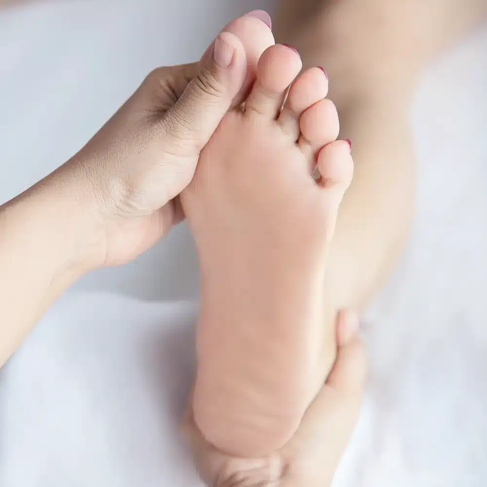 Мягкая шлифовка стоп для удаления ороговевших участков без резких вмешательств.
